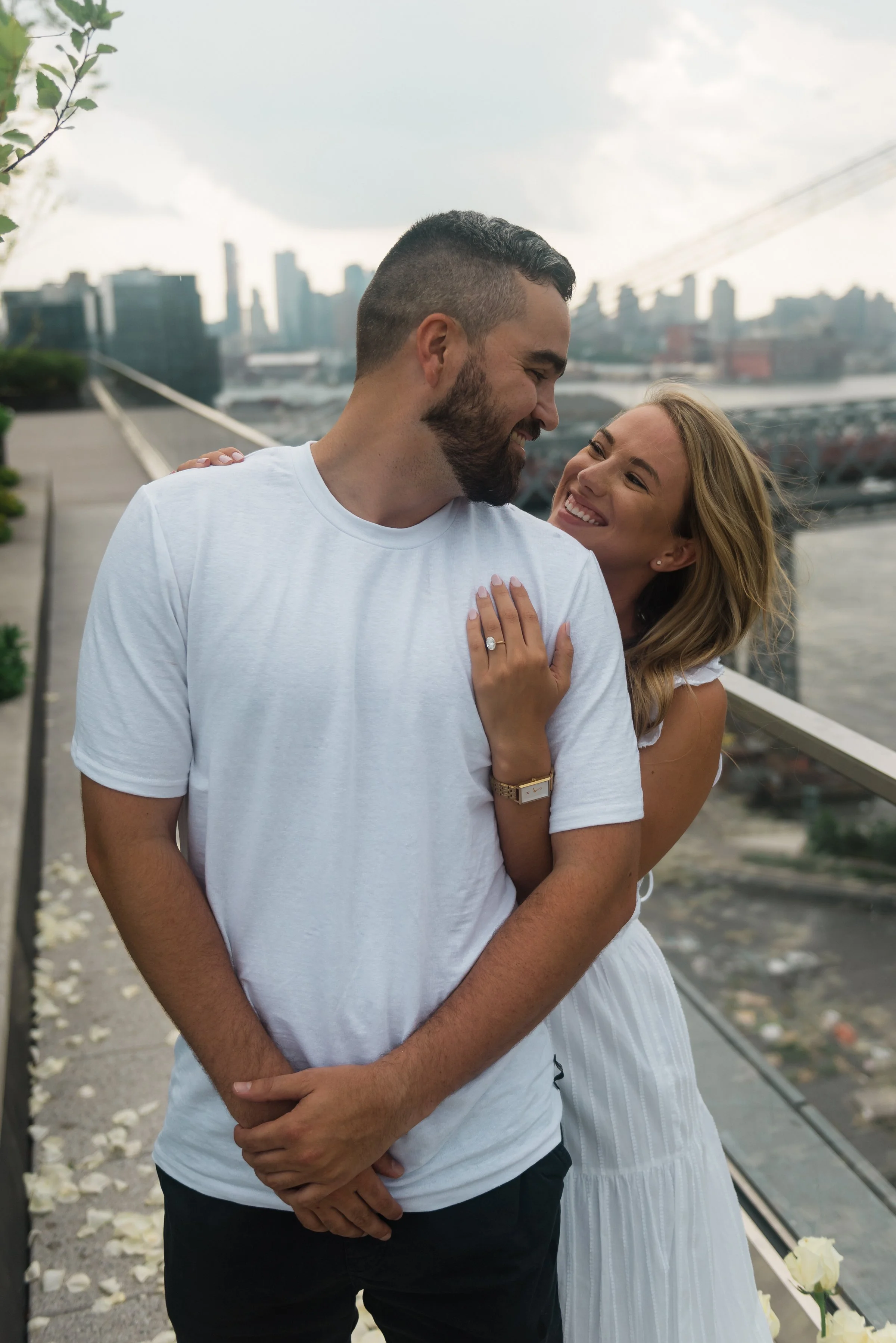 Ashley and Christian met in late 2017 when they found love in a very unexpected place, SantaCon (a bar crawl in NYC where people dress up as Santa Claus). Ashley and Christian hit it off so quickly that when she needed to leave that evening for a holiday party at her cousin’s house, she invited Christian to tag along. (Shout out to everyone that has been there since literally day one of the story!) After that night, Christian and Ashley began meeting for weekly dates that started their ongoing search for the best pasta in New York City. After several years of falling more and more in love, Christian proposed to Ashley on July 17th, 2021 on the apartment rooftop in Williamsburg, Brooklyn (their favorite place in the world!)